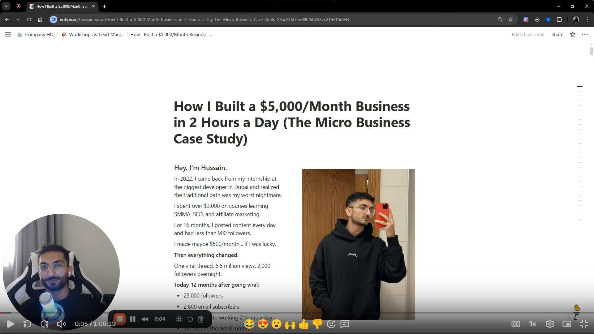 Inside this case study, you'll see the complete breakdown of how I built my audience, validated my offer, and scaled to consistent $5K months.Without cold outreach. Without burning out. Without sacrificing my life.Everything I did. Every mistake I made. Every breakthrough that changed the game.I'll see you on the other side!